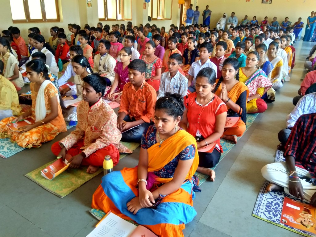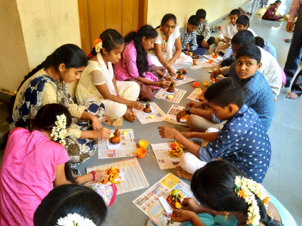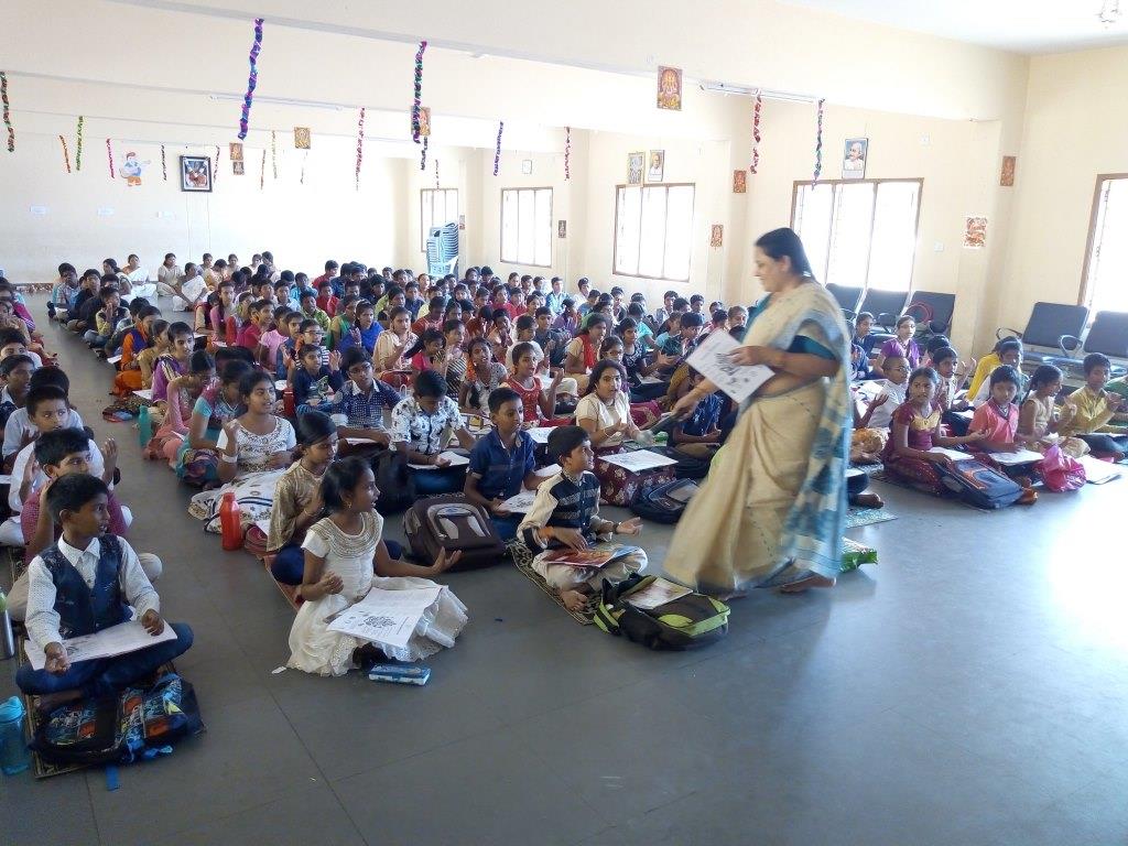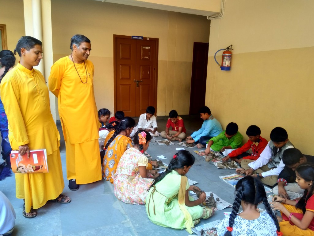 GVKCV conducted the Balvihar Camp 2018 from 28th March to 31st March 2018. Swami Suveerananda ji presided over the programme. Brahmachari Srivatsa Chaitanya and Brahmachari Pavitra Chaitanya conducted different sessions. The theme of the Camp was Ganesha: Be my Friend. During the camp, the students listened to different stories related to Lord Ganesh. The students practised Ganesha Pancharatna Stotram and Bhajans. Students also practised Bhagavad Geetha Chapter 18. Students were involved in making and painting their own Ganesha Idol. A number games and activites were conducted which would help the students cultivate lateral thinking. On 31st March, all the students performed Ganesh Pooja. Finally the students received their Camp participation certificate and blessings from Swamiji.